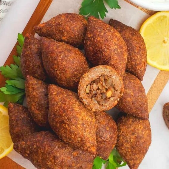 Crispy bulgur shells filled with seasoned ground beef, onions, and warm spices.