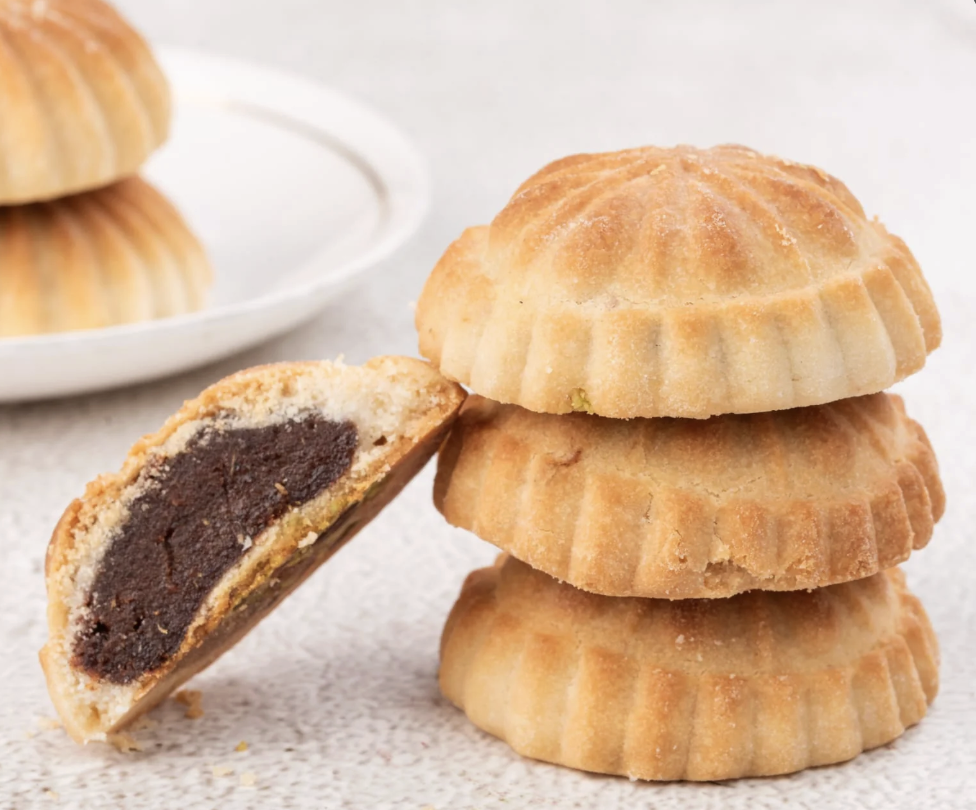 Traditional shortbread-style cookies filled with dates.